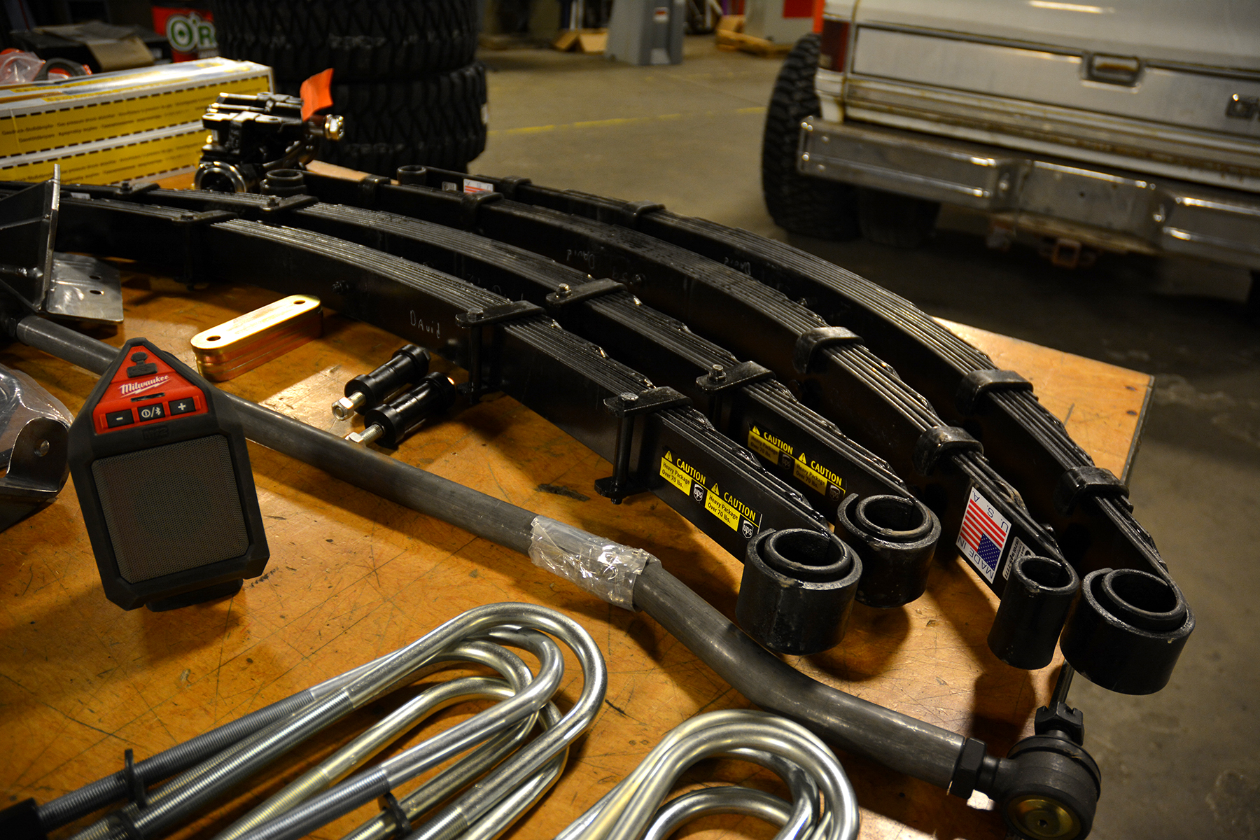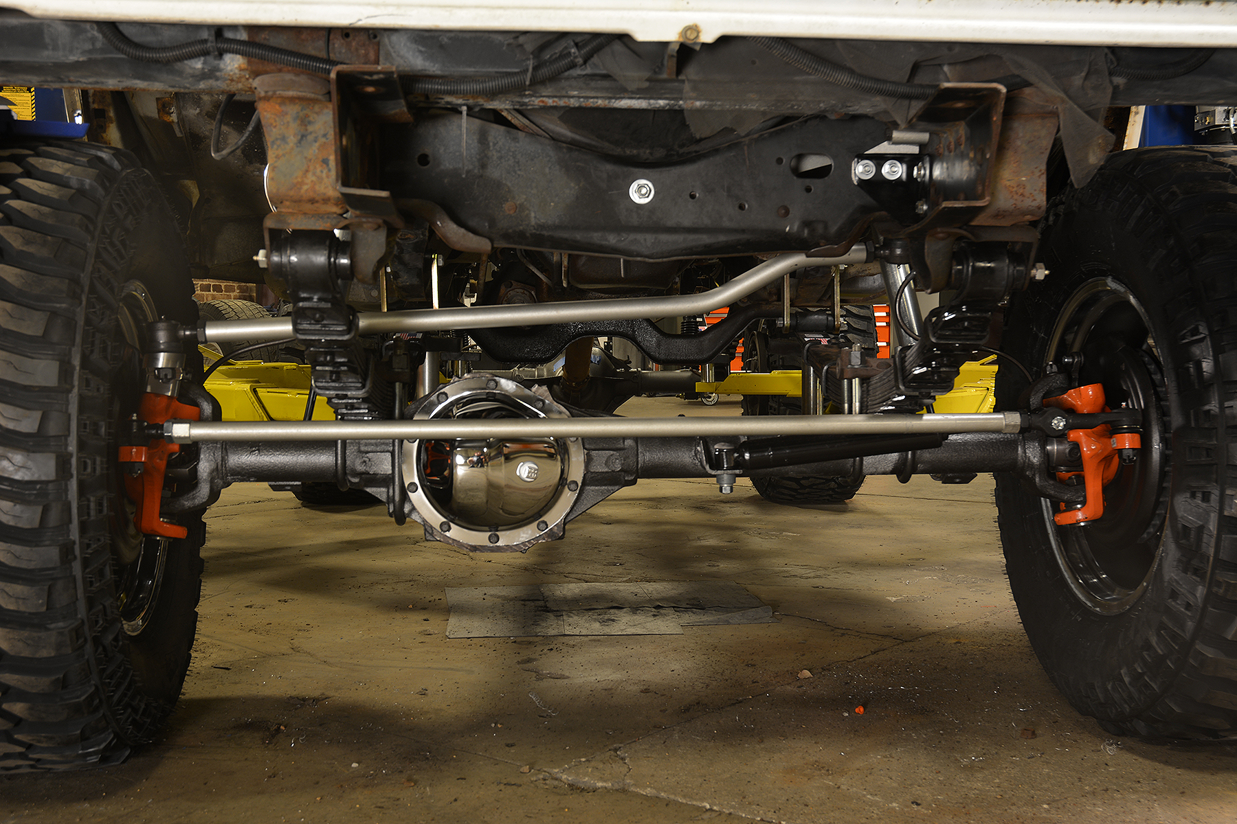 Front & Rear Suspension: 56" rear custom leaf springs, 3/4 ton u-bolt kit, '73-'87 shackle flip kit, axles & knuckles, Bilstein 5125 shocks, Greasable rear springs bushings kit, rear shock brace, replacement shock stud, heavy duty greasable front shackle, front shock mount, PSC '80-'87 Steering box, '81-'87 4WD steering box brace, crossover & high steer kit, Reid racing GM knuckle, Yukon Gear hardcore locking hub, Yukon Gear chrome molly axles, Tubular engine crossmember/mounts, Traction Bar