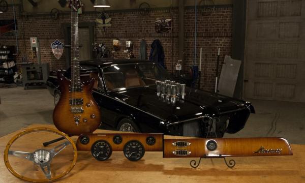 The V8 Interceptor guitar started out life as a one-off Paul Reed Smith custom. Stacey contacted Master Luthier Jonathan McClanahan and got him working on the body and neck. Jonathan also made some real wood dash inserts for the V8 Interceptor that matched the curly maple top of the guitar, and even re-wooded the LeCarra steering wheel to match!