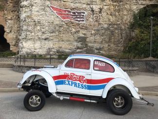 Approximately nine years ago I was diagnosed with Parkinson’s at the age of 43. I got to the point where I couldn’t even hold a wrench, but after taking medication I was able to control it a little bit – enough where I can at least work on cars. My wife said you need to build something nobody’s ever seen before you’re not able. So, my friend Nate, my wife, and I came up with an idea to build a gasser Bug since I’ve never seen one. At the time I was working on my ‘59 Volkswagen, so over the course of five years give or take I’ve made the frame, suspension, firewall, floorboard, and most everything else with the help of a few friends on stuff that I couldn’t do because my Parkinson’s was shaking too bad. I was able to build a nostalgic-looking 60’s Gasser-inspired Bug, and I competed in Hot Rod Drag Week 2021 and won the spirit of drag week award with it! I made the whole trip, and my fastest pass was 11.9. The car will run lower 11s if I can stay in the gas pedal. It has a 385 stroker motor, 350 turbo transmission, 3100 stall converter, and 7 1/2-inch rear end with Yukon 342 gears and axles. It’s a blast to drive and gets all the looks with the Pepsi-Cola Express theme down the side. I’ve always loved Pepsi and I like the way it looked on the car!