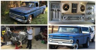I have a 66 c30 dually that has been in my family as long as i’ve known it. its been passed around more than a set of hooker headers! My uncle and cousins had actually street raced it from time to time, with a 383 stroker then a 427! Everyone from my distant uncles to cousins, step dad, myself and even my mom has driven this truck. I drove it in high school but lost track of it in 1993. My 8 year old wanted to build a hot rod for his first car and i immediately thought of the old truck. It took over a year to reacquire the truck but to my luck it was still in the family but buried under 20 years of junk in a field. We dug it out with a tractor and a 4×4 but someone had broken windows and trees had pushed against the body. To my amazement, the interior was perfect so i brought it home and taught my boy how to change those huge 19.5 tires using only pry bars. I showed him how to replace the glass and seals and he took to it like a pro. Next was to address the worn out 305 that somehow found its way into the truck. My son really wants a hot rod motor so i thought why not carb a 5.3 LS and get reliability and old school looks? I found a 5.3 from ’04 avalanche and got to work mixing some old with some new. My boys, 8 and 3, have been a part of this since day one and even my wife jumps in from time to time. I hope to have it done soon so we can cruise with the wife when she takes out her ’66 mustang I built for her. Your show gives us inspiration and very good tips on builds that, unlike the other shows, your builds are realistic and results actually obtainable by home mechanics! Thanks for the great program and my boy says he loves Sgt Rock’s machine gun and the green jag!