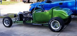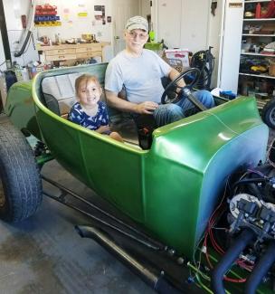 I picked this project because I wanted to build a car from the frame up and my 5 year old granddaughter liked it. She had fun helping with the build and learning to use a ratchet and wrenches. I plan to cruise around the parks around here and attend a few car shows. I started with drawings from California Custom Roadsters, some 2"x3" rectangular tubing, 1/4" and 3/8" plate and catalogs from Summit, Jegs and Speedway. I fabricated the frame, brackets, motor mounts, brake lines, radius rods, tie rod, and drag link. The LS1 and 4L60E are out of a 1998 Z28. The rear end is from an S10 Blazer and the steering box is a Corvair unit. The body, fuel tank, coil overs and front axle are from California Custom Roadsters. It took me 1 year from start to finish.