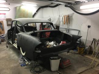 As for my Caddy, I had the frame sandblasted and replaced a lot of rusty metal in the body floor. Once the frame and body were together again, I installed a 4-link rear suspension and air bag system. I'm using shockwave bags in the front, and an accuair Endo CVT tank, which has the compressor and valves built inside of it. Then I cut off the awkward tailfins and replaced them with 1957 Packard taillights. This was my first time doing anything like this, so I relied on a lot of gearz episodes for guidance! I'm now barely in the process of metal working the body to get ready for paint. I have a lot to do by march 30th, and pray that I can get it road Worthy.